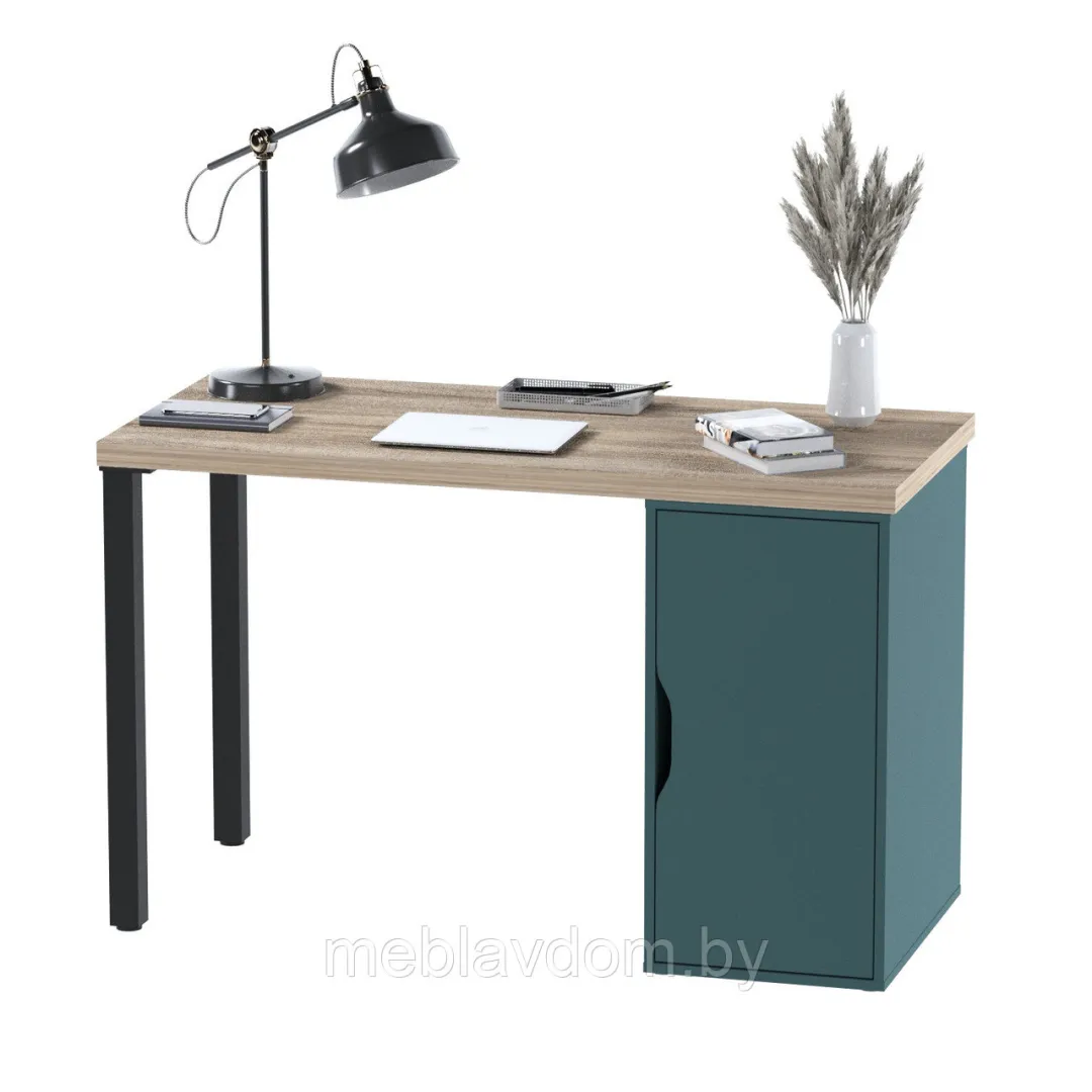 Стол письменный ИНГАР 1/ДВ/T (дуб беленый/серо-бирюзовый/черный)
