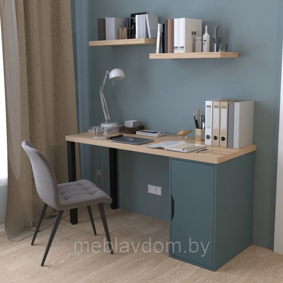 Стол письменный ИНГАР 2/ДВ/T (дуб беленый/серо-бирюзовый/черный) (1.4м)